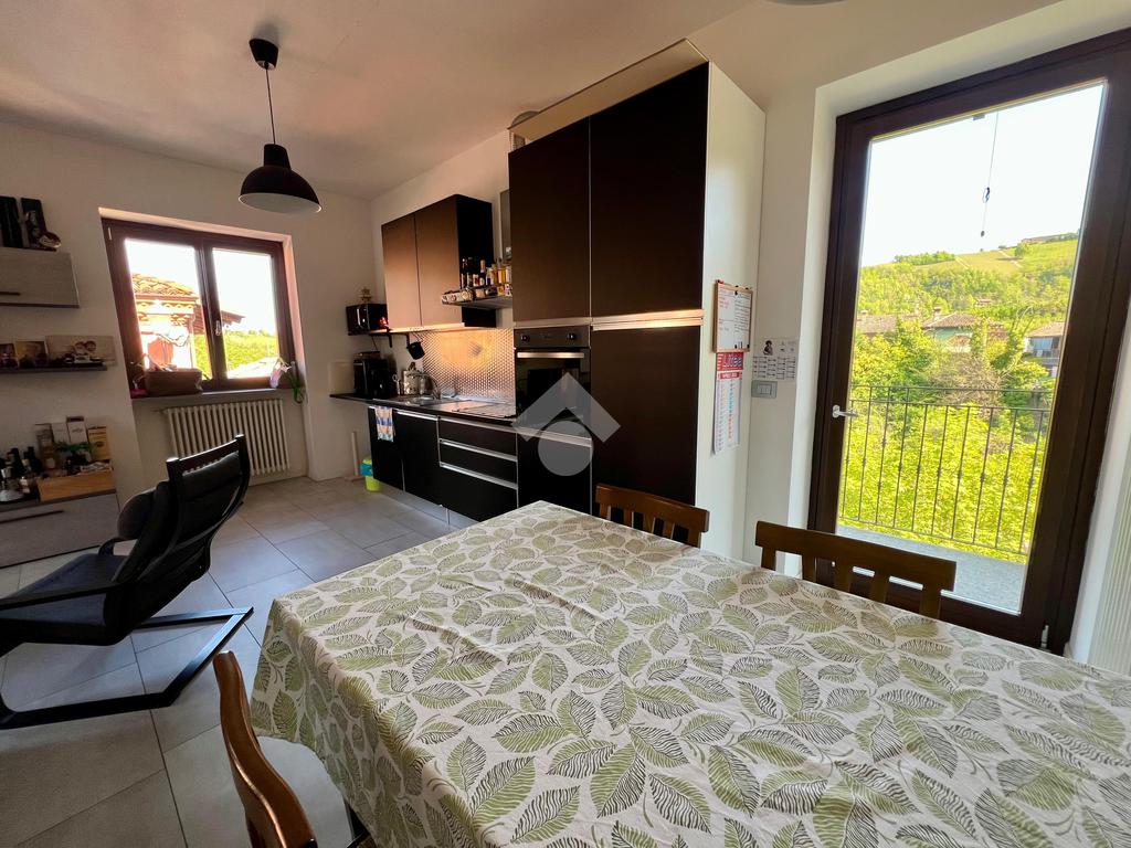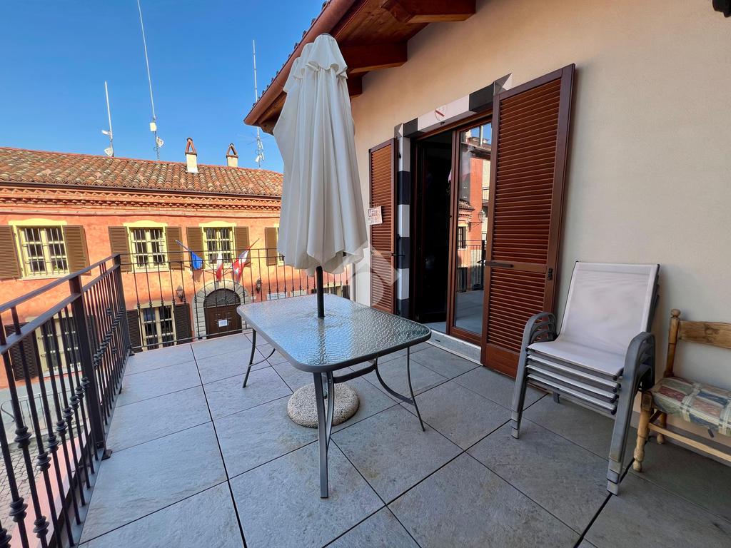 SINIO - Nel Comune di Sinio, in posizione centrale e privilegiata sulla piazza principale, raffinato appartamento bilocale inserito in un contesto residenziale. La proprietà è parte di un edificio di sole due unità abitative, garantendo indipendenza e tranquillità. L'unità immobiliare si sviluppa interamente al primo e ultimo piano. L'accesso principale avviene tramite un disimpegno d'ingresso che organizza i flussi verso i diversi ambienti della casa. La zona giorno è concepita come un moderno open space che integra armoniosamente il soggiorno e l'area cucina. Questo ambiente si distingue per il duplice affaccio esterno: il living si apre su un terrazzo abitabile, mentre la zona cottura dispone di un balcone con vista sul verde circostante. La zona notte, studiata per garantire il massimo comfort, comprende una camera da letto matrimoniale di generose dimensioni e un bagno. La proprietà si completa al piano terra di un garage privato, a cui si aggiunge un ulteriore posto auto riservato. Il riscaldamento è autonomo. Un ulteriore valore aggiunto è rappresentato dalla totale assenza di spese condominiali. L'appartamento viene affittato da arredare.