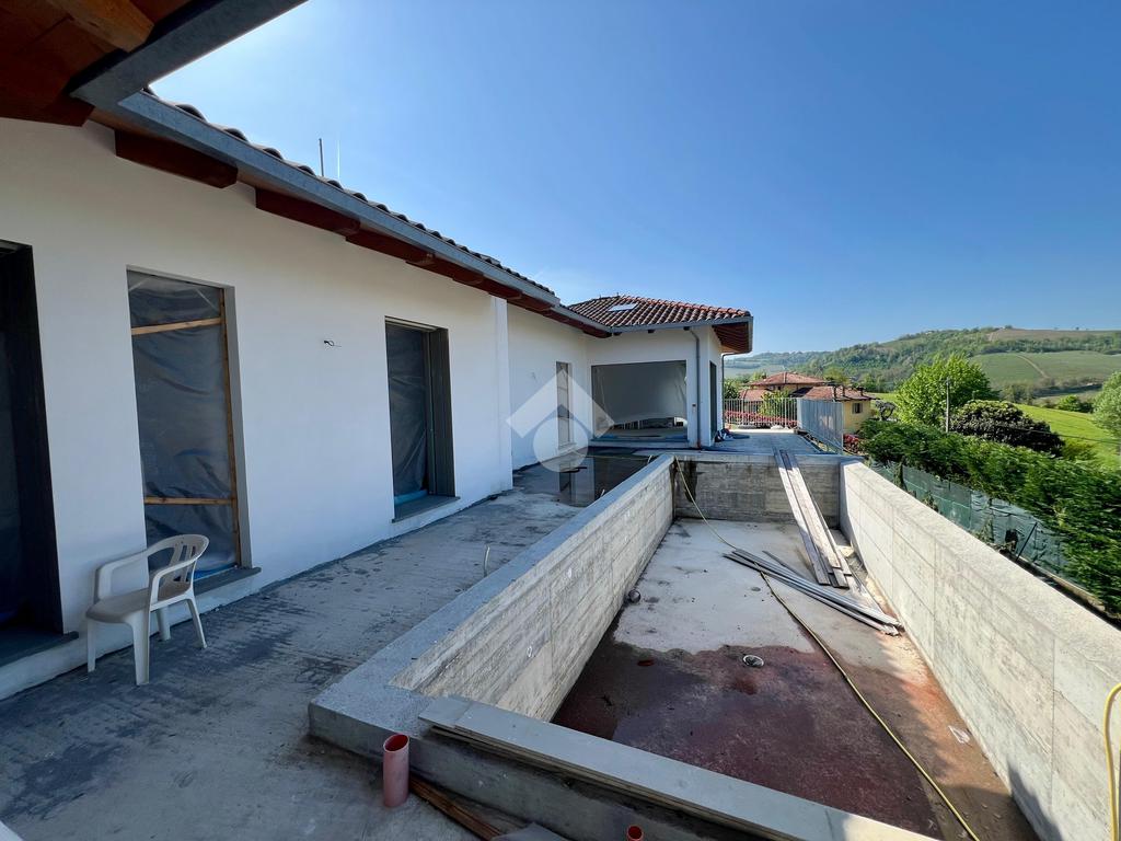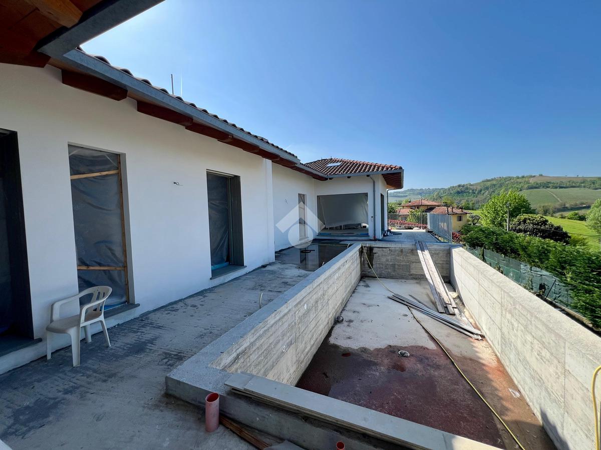 SINIO - In posizione dominante, immersa nella quiete delle colline, proponiamo una splendida villa indipendente in fase di costruzione, progettata per offrire ambienti moderni, luminosi e un’eccezionale vista panoramica. L’abitazione si apre su un ingresso in disimpegno che conduce alla zona living, dove troviamo una cucina contemporanea con isola perfettamente integrata con l’ampio soggiorno. Le grandi vetrate caratterizzano l’ambiente e regalano una vista aperta e suggestiva sul paesaggio circostante, creando una continuità armoniosa tra interno ed esterno. La zona notte è composta da tre camere da letto, tra cui una raffinata master bedroom dotata di cabina armadio e bagno en suite. Completa il piano un secondo bagno e un comodo locale lavanderia. Scendendo al piano inferiore si sviluppano ulteriori spazi dedicati al comfort e al tempo libero, tra cui un ampio garage, una tavernetta accogliente e un ulteriore bagno, con la possibilità di realizzare una zona benessere o sauna. All’esterno, la proprietà è valorizzata da un giardino privato e da una scenografica piscina a sfioro, perfettamente inserita nel contesto naturale e ideale per godere appieno della vista sulle colline. La casa sarà dotata di riscaldamento a pavimento e aria condizionata canalizzata, con finiture moderne e possibilità di personalizzazione, rendendola una soluzione esclusiva per chi cerca comfort, privacy e qualità abitativa.